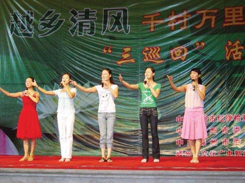 报告会后,由乡镇部门选送的部分优秀廉政文艺节目逐一登台。越剧、相声、小品、诗朗诵、歌舞等丰富多彩的节目吸引了村民的眼球。晚上,村民们还观看了一场廉政题材的影片。