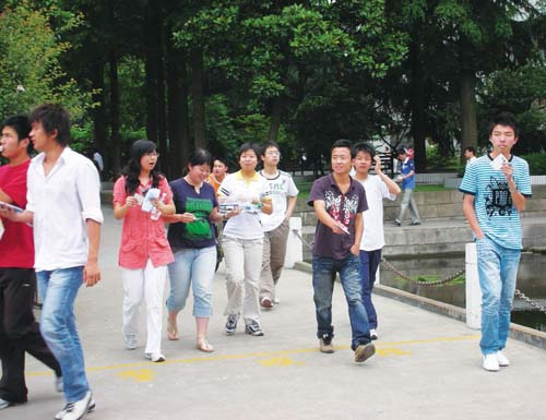 牵动人心的2007年普通高校招生全国统考昨日开考。全市6035名考生(其中普通高校考生5452人,单招单考的高职考生583人)分赴全市8个考点214个考场应考,各考点秩序井然,环境安静。图为语文考试结束后,嵊州中学考点的考生神情自若、信心十足地步出考场。