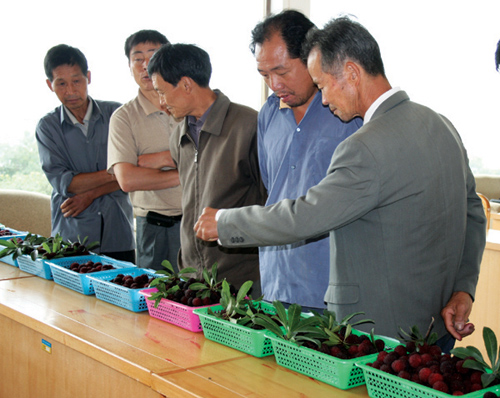 6月15日,在市鹿山杨梅节上,我市第一次杨梅品质评比——“丰泥”杯杨梅擂台赛在丰泥假日山庄举行。 我市杨梅大多从余姚慈溪引进,在石璜、金庭等地都有种植,但大规模种植集中在鹿山街道东大湾等村。近几年来,杨梅市场销售形势看好,每公斤价格保持在四元左右。首次杨梅比赛吸引了各地种植户参加,除了鹿山街道东大湾、方田山等村,还有石璜镇寺新、溪西村和金庭镇泗古平村等地农户也闻讯而来。 绍兴市经济特产站站长、高级农艺师周熙朝等专家组成的评比小组,经过严格评定,金庭镇新峰村农民单贤生选送的杨梅获得第一名,鹿山街道农民屠军华和叶兴才名列第二。 单贤生从1983年开始种植杨梅,目前有杨梅面积3亩。本来是抱着学习交流的目的来的,没想到拿到第一名,单贤生很高兴:“种了这么多年的杨梅,第一次跟大家一起评比交流,很难得。这样的比赛,对我们以后提高种植管理技术,是一种促进。”
