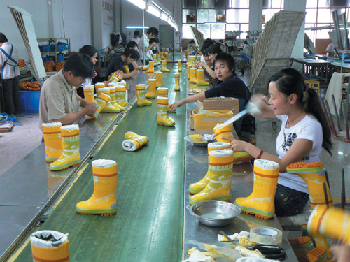 在经过长长的流水线作业后,一双双色彩缤纷的漂亮雨鞋便呈现在我们眼前。“去年只有2条生产线,今年增加到了6条,全部开足还来不及,单子太多,现在是我们挑客户了。”说这话的时候,“佰利鞋业”厂长程唐来颇有些得意。他没有夸口,在陪我们参观车间的短短半小时里,他的手机不时响起,都是来要货的。如今一些几千双的小单子,会被程婉言谢绝。“一开始我们都是这种几千双的小单子,而且要上门推销,现在都是数万双的大单子,都是主动上门要货。”程厂长说,前不久刚接了一个26万双的大单子,现在大大小小的单子已排到了年底,一些迟来的小单子实在来不及做了。