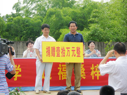 【图文】贝秋云向家乡长桥小学捐资10万元