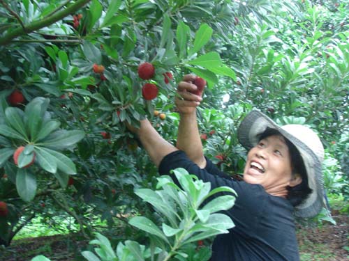 6月22日,鹿山街道的东魁杨梅开摘。据外半塘村的果农张月樟介绍,他结果最多的一株东魁杨梅树可采摘100多斤,按批发价平均每公斤10元计算,一株杨梅树的收入有500多元呢。据悉,鹿山街道有杨梅园3000亩,成熟园2000亩左右,今年的杨梅预计在200万公斤,果农的收入相当可观,特别是近几年培育的东魁杨梅又大又甜,每公斤的最高市场价可卖到20元。图为外半塘村的果农正在采摘东魁杨梅。