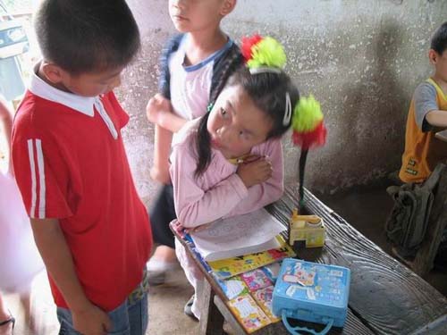 我们的课桌虽简陋,但学习可是顶呱呱哦!