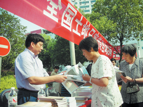 昨天是第十七个全国土地日,市国土局在文化广场举行了大型宣传咨询活动,向广大市民宣传国土政策及相关法律法规知识,并接受现场咨询。与此同时,市国土局还深入各乡镇(街道)、学校及全市规模以上企业,广泛开展国土法律法规知识宣传活动。(徐永明)