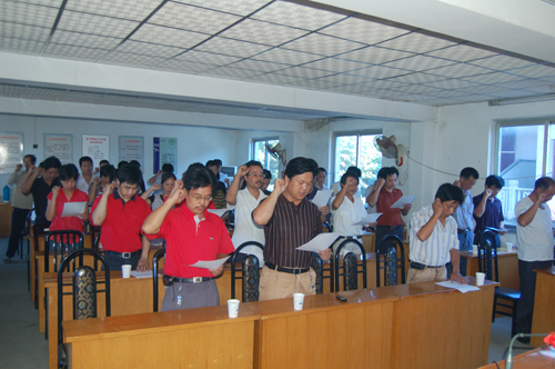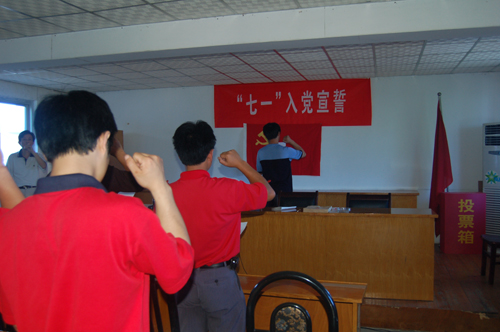 仪式开始,首先在领誓人徐友林同志的领读下,全体新党员面对党旗庄严宣誓。仪式后,新党员代表分别发言,面对党旗党员们励志在今后的工作中始终要坚持以党为中心,充分发挥共产党员的先锋模范作用,不断地创造性地开展各项工作。