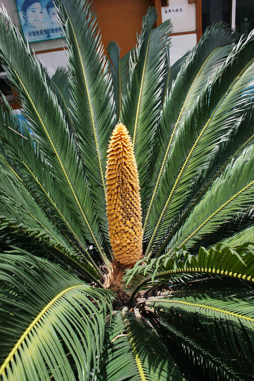 俗话道“铁树开花,哑巴说话”。近年来随着全球气侯变暖,江南一带铁树开花现象越来越多,近日,我市就有多位热心市民打进热线说,市区多个地方的铁树都在开花了,非常好看。 在天乐路48号一厂区大门前,记者看到两棵铁树,其中一棵铁树开了花。只见铁树中间露出一个黄色的状如“花菜”的花朵,花长得像排球一样大小,上面还有几只小蜜蜂在采蜜。无独有偶,在三江街道五里浦村的一户村民院子里,也有一棵盆栽铁树开出了类似的花朵。而在三江街道社区卫生服务中心的大院里,两棵铁树则全部开起了花。与前面几处不同的是,这里的两棵铁树花朵形状像玉米棒,上面还有鳞片一样的东西,外形则酷似去了皮的菠萝,嫩黄嫩黄的,煞是好看。树叶稀疏的那株,花朵长得大些;树叶浓密一些的,花朵长得要小些。据介绍,几年下来,他们都还是第一次看到铁树开花。刚开的时候,只是一个小小的花苞。 记者了解到,铁树因其形态奇特、四季常青且生命长久而被视为吉祥与长寿的象征,近年来越来越受到市民的喜爱。正因如此,把铁树摆放在房前屋后作点缀,或者把它作为结婚、造房等喜庆礼物的市民也越来越多。 记者搜索了一下网上资料得知,铁树原本生长在炎热的热带地区,常在春夏之际开花。铁树开花有雌雄之分,但一株铁树只开一种花,花期可以持续一个月以上。铁树生长缓慢,从幼苗到开花需要十几年甚至几十年,所以铁树开花确实难得一见。而且铁树怕冷,只要气候稍不如意,就会长得又矮又小。三江社区卫生服务中心的铁树开的是雄花,而天乐路及五里浦的那两棵铁树开的是雌花。如果是雌花,就能长到排球那么大。铁树还会结果子,结出的果子像红色的鸡蛋,被人们称作“凤凰蛋”。 铁树是生长在赤道附近的典型热带植物,所以铁树开花结果的现象在热带、亚热带地区比较常见。在广东和台湾一带,一些到了一定树龄的铁树几乎隔年都会开花,而在寒冷的北方,铁树是永远不会开花结果的。而我市多年以前四季分明,气候相对较冷,那时听到“铁树开花”就以为是一则奇闻,但近年来,随着气候的变暖,铁树开花现象十分普遍。 ■相关链接: 铁树学名苏铁,是地球上现存的最原始种子植物之一,有“植物界大熊猫”、“活化石”之美称,已列入国家重点保护野生植物名录。苏铁树姿刚健,挺拔秀丽,四季常青,自然景观优美,是一类具很高观赏价值的园艺植物。其根、叶、花及种子皆可入药,有止咳、治痢、止血、益肾、降血压等功效。据最新研究,还具有抗癌的作用,是一种珍贵的天然药物。