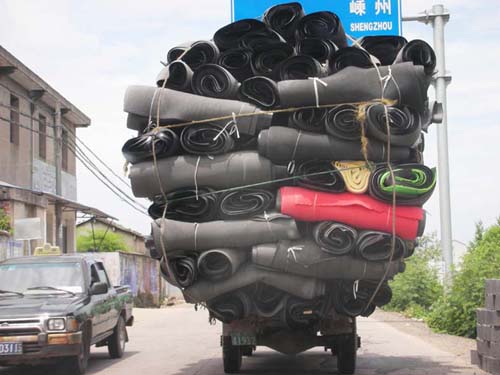 仙黄老路湖头村地段道路比较狭窄,再加上道路两侧布满仿古木雕作坊,平时交通就比较繁忙,车辆货物超高、超长载运,严重阻挡行车视线,极易引发交通事故,希望车主以安全为重,切实把好货物运输关,切莫因小失大。图为一辆满载货物的农运车如“冰山”般驶过这里。