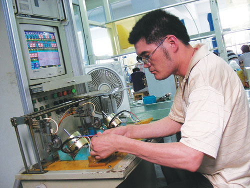 市恒润电机制造有限公司自去年9月落户市经济开发区以来,狠抓企业内部管理,努力提高产品质量,企业获得了稳步发展,目前已成为海尔等著名企业的电机专业生产配套厂家。图为生产车间一角。