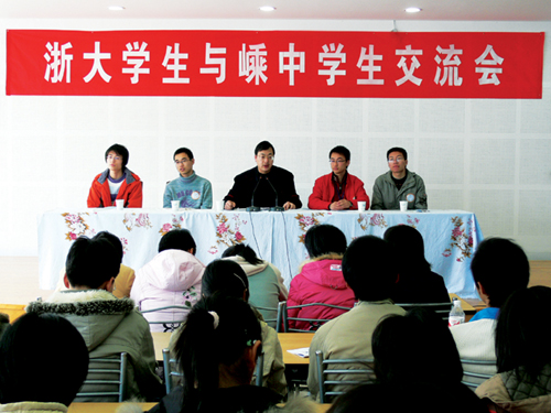 2006年寒假浙大学子回访母校与学弟学妹们交流座谈。