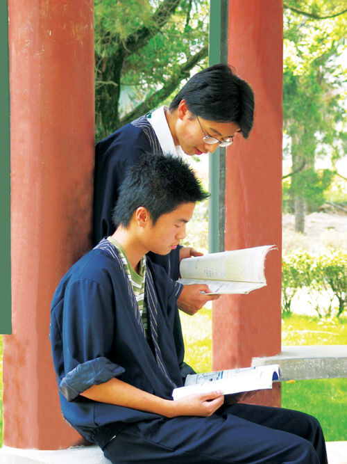 在幽雅怡人的校园内阅读。