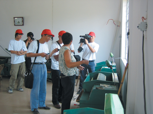 昨日,由新华社、浙江工人日报、绍兴日报、绍兴广播电视总台等媒体10多位记者组成的“银线千里行”联合采访组来到嵊州,对我市供电局加强农村电网改造、大力度服务新农村和个私集聚区建设产生了浓厚兴趣。图为媒体记者在崇仁应桂岩茶叶加工集聚区采访。
