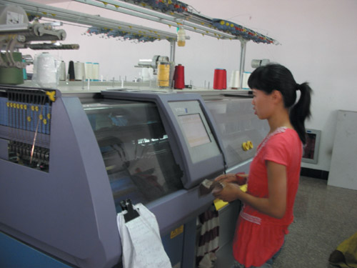 近几年来,浙江宏达制衣有限公司十分注重技术设备的更新,上半年又新引进了200台电脑横机,大大提高了生产效率,每台工作效率比原先的手摇横机提高40%。
