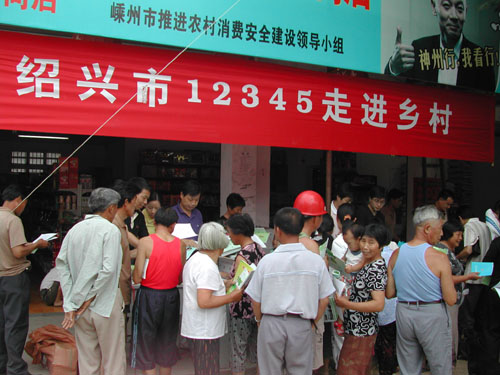 7月10日,绍兴市“12345”走进乡村活动在贵门乡贵门村举行。绍兴市农业局畜牧专家金兆军、茶叶专家陈金富等一行就香榧、茶叶、家禽养殖、卫生救护常识等为农民作现场咨询指导,并分发专业宣传资料1000余份。图为活动现场。