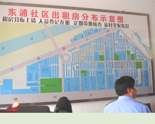 在东浦社区有一张专业制作的《出租房分布示意图》,该图详细地记载着东浦社区各个出租房的分布情况和地理位置,从而大大方便了社区对出租人员的管理。
