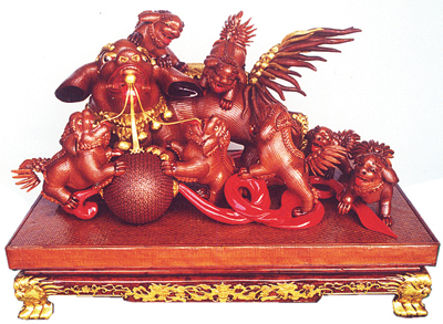 龙、凤、麟和狮子是中华民族特有的神禽灵兽,也是吉祥之物。这些神禽灵兽既华美又威武,装饰味很浓,是嵊州竹编精品中经常采用的题材。