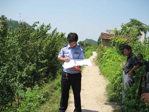 9点30分,值班室电话又响了起来,报警人称在北漳镇附近有一辆皮卡车掉到田坎下,需交警帮助。交警徐国军接到警情后,立即跳上警车,记者也跟着前往,半个小时后到了出事地点。在一条泥路中段,只见一辆货车掉到了约1.5米高的坎下花木田中,司机已是束手无策。徐国军看到情况后,立即下车查看现场。这时已近中午,炎热的阳光晒在皮肤上火辣辣地痛。不到5分钟,徐国军的制服后背都已被汗水打湿了,但他依然一丝不苟地测量着现场。十几分钟后,记者已被晒得受不了,加之花木田里一些蚊子等小虫不断向身上侵袭,不多时,记者腿上、手臂上立即多了十多处红斑。但徐国军全然不顾蚊蝇的叮咬,依然有条不紊地做着事故记录。汗水不断地从他脸上流下来,他也顾不得擦一下。后来,为了帮助司机把车子从坎下弄上来,徐国军还帮他联系了吊车。当事故处理结束时,已近中午11点,徐国军整个人也像从水里捞出来一样,他向吊车司机交待完相关事宜后,才上车回家。由于衣服被汗水打湿了,被车子里空调的冷风一吹,徐国军打了好几个喷嚏,他有些烦恼地说:“这几天感冒了,又流鼻涕又流眼泪,难受死了。”记者问他:“平时感冒请假吗?”“一般都不请假的,我们事故中队一共才14个警员,24小时都需有人值班,一遇到事故就要出警,如果有人请假,排班都排不过来呢!”徐国军笑呵呵地告诉我们。 回到值班室后,翻开值班日记,记者又发现了好几起交通事故: 9时58分,在禹溪停车场附近,一辆轿车与一辆货车相撞,交警到现场进行处理…… 10时1分,鹿山路建设银行附近,一辆的士与电瓶车相撞,交警到现场进行处理…… 10点44分,八达大厦附近发生一辆电瓶车与厢式货车相撞事故,交警立即赶往事故现场…… …… 下午4点20分,报警电话又响了起来,甘霖镇苍岩长安村发生一起摩托车和行人相撞事故,需交警立即前去处理。这次由交警鲍钧出警,20分钟后,鲍钧赶到事故现场。伤者是一位年纪比较大的妇女,在横穿村口马路去干活时与一辆摩托车相撞,在相撞的地方,一大摊鲜血令人触目惊心,伤者已被“120”救护车送到人民医院,摩托车驾驶员呆呆地在一边不知所措。