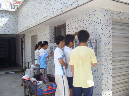 7月24日,嵊州二中十多位学生在东南社区组织了一次“出一点力,还社区一片洁净”志愿活动。他们清理污目广告,清扫卫生死角,还为社区更新了黑板报。