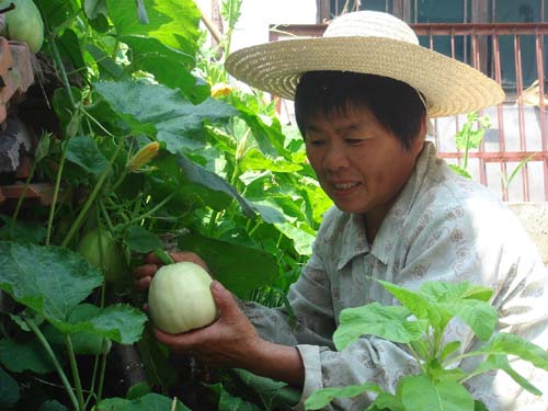 中午11时,温度已经超过了40度,可是谷来镇勤勇村的黄丽庆还在自家田地除草。她说,虽然气温很高,身上也长满了痱子,像针扎一样的难受,但田和地仍然舍不得抛荒,农民不种田地靠什么吃呢? 今年已经56岁的黄丽庆,丈夫是村党支部书记且经营着电站,一双儿女也很有出息,在市区有较好的工作,家庭条件已相当不错。照理可以闲居家中当当家庭妇女,但是勤劳的黄丽庆就是闲不住。她一个人不仅照料着家中的所有家务事,还耕种着15亩的田地。 这几年,村里外出务工的人多了,一些田地闲置着,黄丽庆看着不忍心,便一家家地上门去“收购”,然后将村民抛荒着的田地全部种上农作物。这么热的夏天,她也是早出晚回。 黄丽庆的勤劳在村里树立起了很好的口碑,也在一定程度上带动了村风。村里的妇女们基本上没有闲居在家的,要么外出打工,要么耕种着田地。勤勇村的田野上到处都是绿油油的,瓜果蔬菜、水稻玉米等作物长势喜人。 那天,我们去采访黄丽庆,她拿出了自己种的香瓜、玉米招待我们,黄丽庆很自豪地说,玉米是刚刚掰下来的,“气”还没断呢,这么鲜甜的嫩玉米在城里是吃不到的。“现在农民的日子过得不错,吃的全部是自己种的无公害作物,稍微勤劳一点的农民,每年收入上万元的钱肯定是有的。” 这几天,勤勇村富里岙至黄尖岭顶自然村的通村公路正在整修,黄丽庆每天早上四点半就起床,与村民们一起上路劳动,做到十点钟放工后,又上自家的田地忙着。勤勇村的村支书黄岩铨说,我们村的村名就是勤劳勇敢的意思,全村200多户人家的田地极少有抛荒现象,即使是村前屋后有“一屁股”大的空地,村民们也会种上南瓜、丝瓜什么的。“你们看看,我们家门前这么小的一块空地方,都被她种满了香瓜、南瓜呢。”黄岩铨一边说着一边指着自家门前正在摘香瓜的妻子,一脸的自豪。