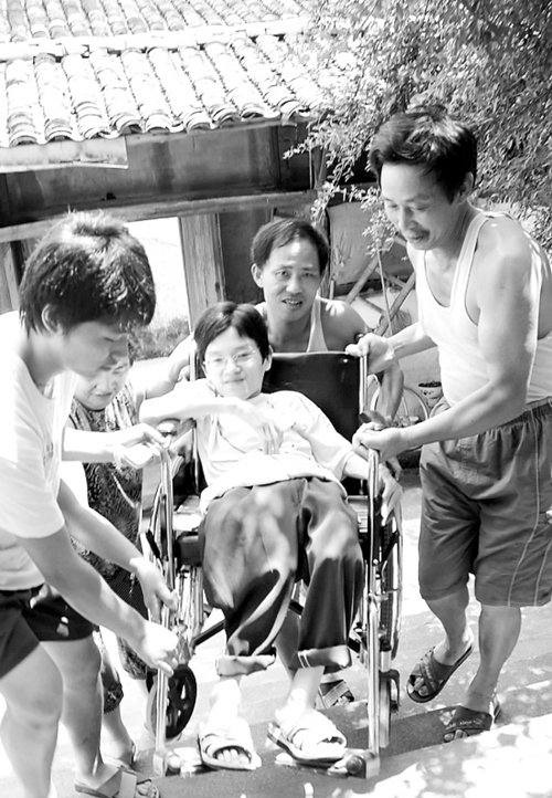 我市甘霖镇郑庄村的裘科亮同学被浙江财经学院录取了!这个好消息让知道他情况的人都为他和他的母亲而骄傲——二级残疾的他,为了求学,在10年的时间里,是母亲周校芬背着他走进学校…… 8月1日,周校芬最担心的一件事终于落了地:嵊州爱心人士张小达与裘科亮结成了助学对子,愿意全额提供其上大学的学费。周校芬紧锁多日的眉头终于舒展了,她毅然决定,上杭城再为儿子陪读4年大学。