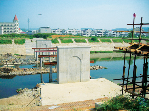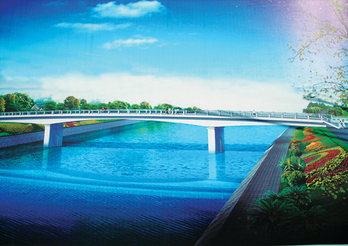 作为我市今年的重点工程之一,长安桥南起长安路,横跨长乐江,北接鹿山新区新建路网,它的建成将城西片和鹿山新区紧紧连了起来。该工程总投资1500万元,总长为287米,其中主桥长108米,桥宽17.5米,分设南北引桥。