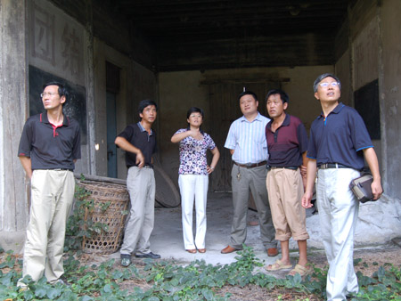 夏副市长与街道办书记马永根、副主任王晶和沈家坎村书记、主任商谈了如何将这嵊州中西合璧的最大古建筑保护起来。