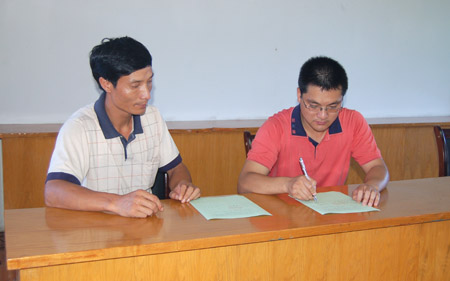 图为与承包复垦建设用地承包农户签订《复垦建设用地耕种责任书》