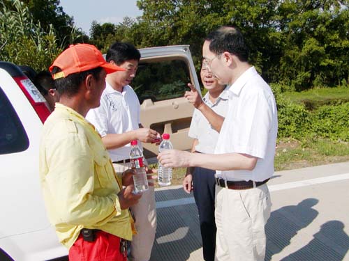 8月9日,市公路管理段有关领导行程300多公里,看望了在高温下坚持公路养护的三界、甘霖、崇仁、谷来等公路站养护工和坚持在绍甘线、枫谷线工地上的施工人员。