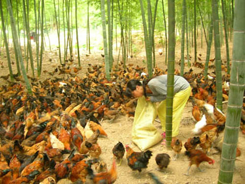 8月11日早晨,黄泽镇前良村标准化放山鸡养殖场里传出了“咯咯哒、咯咯哒……”的声音,循声而去,这是一片鸡的海洋:竹林里、山坡上、田埂间、水塘边,在这占地150多亩的养殖区里到处是鸡声,到处是鸡影,大的、小的、白的、花的,真使人眼花缭乱。 场主吕达庆,看到有人前来鸡场,当即放下手中的活儿过来接待我们,当我们问及今年放山鸡的养殖效益时,他笑呵呵地说:“今年可以。”当问到场内现有多少存栏数时,这下吕达庆的话匣子打开了,他指着这一片充满着希望的养殖区说:“数量可多了,这边饲养员在喂的竹林里约有5000多只,那边山坡的树林棚里还有5000多只,共计有10000多只,这一带的山坡地我都承包下来了,打算东边的竹林要扩展,西边的树林也要扩展,让荒地披上绿装,在林中养殖放山鸡。” 吕达庆边谈边邀请我们去他的住处看看,于是,我们随着他的指点来到了客厅间。这里是接待室,又是陈列室、荣誉室。墙的上方,挂满了上级领导前来调研、视察工作的留影和取得各级“科技示范户、放心禽产品销售店”等荣誉的证书、证件、商标。在众多的证书证件中,有一张特别珍贵,那就是2006年11月由国家农业部颁发的“无公害农产品”证书。这是一张以环境取胜,符合时代要求,不能用价值来估量的金字照牌。是这张证书引来了城里的许多宾馆、饭店慕名前来采购订货;也是这张证书招来了四方经纪人,前来这山坡脚下看样签约。 如今猪肉价格猛涨,也给鸡价带来了好的势头。现在吕达庆场里的上万只存栏鸡,多数已被宾馆、饭店、各方经纪人以每公斤15元左右的价钱订购,预计每只可获纯利润5元左右。1万多只,就有5万多元,再加上树木、竹的收入,这竹园里的歌声能不欢乐吗?
