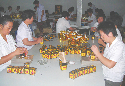 作为一家集产、供、销于一体的绍兴市级农业龙头企业,绍兴舜皇茶业有限公司经过多年发展,已形成覆盖广泛的销售网络,产品远销法国、意大利、德国、西班牙、摩洛哥等国家,同时开拓上海、山东、新疆、北京等国内市场,年销售收入达8000万元。图为公司包装车间。