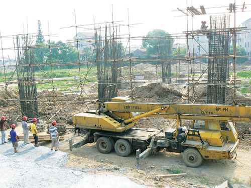 【图文】双塔大桥施工现场:战高温 保进度