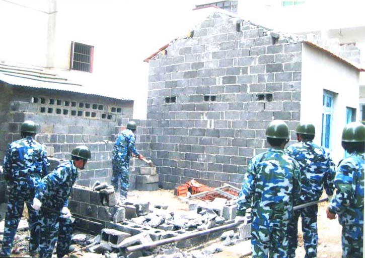 为有效保护国土资源,遏制违法占地行为,今年来,市国土资源局直属管理所进一步加大对违法用地的打击处理力度,到目前为止,共下村巡查186次,制止违法用地45次,依法拆除违法建筑52起。图为拆违场景。