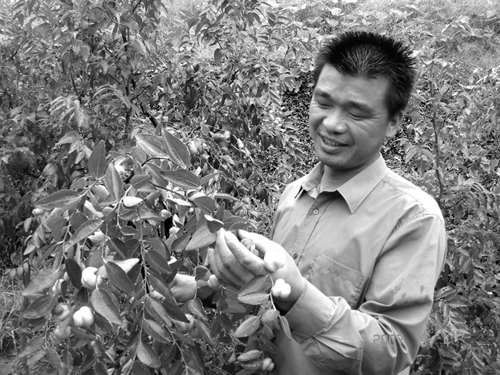 但无论有多少次失败,吴洪良都从没有想到放弃。科技重于生产,他并不急着大面积种植,只要有了技术,就是打好了基础,发展起来肯定会比别人快。正是因为这种想法,七年中,他不仅试种了多个新品种,掌握了嫁接、病虫管理等各方面的技术,还与浙江林科院、河北农大、北方农民科学院等科研院所的很多教授专家成了朋友。2003年,他引种的冬枣品种获得成功,这给了他极大的鼓舞。教授们也很肯定他的毅力和钻研精神,经常为他介绍农户,到他这里来买种苗和接穗。因此,尽管几年来吴洪良一直埋头科研,但出售接穗的收入,支持了他一年年在新品种引种方面的投入。 事实证明了吴洪良的想法是正确的。近几年来,越来越多的人闻讯而来,向他请教种植技术,也有不少人要跟他合作,投资发展规模枣园。2004年,他与几位企业经营者在三界种植了100亩枣园,开始进入了产果期,很受市场欢迎。目前他正在寻找合适的土地,打算再发展一个基地。 新品种枣已经进入了规模发展阶段,但吴洪良的新品种引进事业并没有结束。他的试验田里,技术成熟的“秘密武器”还有不少,像柿子、石榴等等。这些新品种,和他的新品种枣系列一样,都在孕育着一个产业的希望。