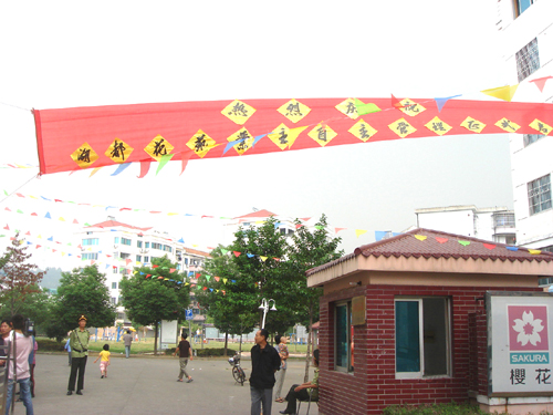 图:业主委员会在小区门口挂出了横幅,向业主们宣告自主管理启动。