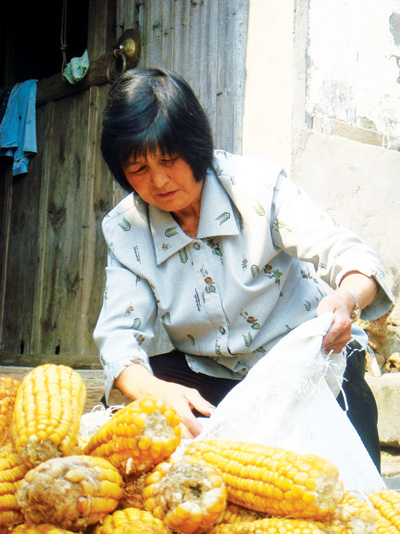 她独自撑起了一个家 19岁那年,新昌姑娘李苗娟经人介绍与三江街道王明堂村21岁青年竹正明相识并结婚,婚后,生了二子二女,一家人经济虽拮据,但日子倒也过得平和甜蜜。然而天有不测风云,1976年4月的一天,竹正明突感身体不适,腰部、腿部等处酸痛不已,后经医生诊断,他患了类风湿性关节炎。从此竹正明失去了劳动能力,生活不能自理,一年之后,他的病情日益加重,连拄着双拐行走也成了一桩难事,后来甚至瘫痪在床。 竹正明发病之时,他们最大的儿子11岁,最小的女儿刚刚断奶。下有4个未成年的孩子,上有年迈的公婆,家庭的重担一下子落在李苗娟孱弱的肩膀上。面对这沉重的打击,李苗娟十分悲伤。“开始那段时间,我总是忍不住哭。我想我的命真苦啊!”李苗娟回忆说。 但坚强的李苗娟很快振作起精神,独自一人撑起这个风雨飘摇的家。此后的几十年时间里,李苗娟几乎每天天不亮就起床下地劳动,一直忙到天黑才收工,期间还得回家几次为家人做饭,伺候瘫痪在床的丈夫。“我们看到她总是一天忙到晚,从来没有时间坐下来和邻居聊天。”她的邻居竹正千说,“一个女人家,把老的小的都照顾得这么周到,和邻里之间也相处和睦,这样的好人天底下也少见。” 31年过去了,现在李苗娟的儿女们都已成家,家里的负担轻了,但李苗娟还是闲不住,在地里种了多种蔬菜和粮食作物。在老屋门口晒玉米的李苗娟,和我们说着她经历过的往昔,眼角有一丝泪花,但目光是那样的坚定。“当时也有人劝我放弃,但我一直想,我一定要把孩子们养大,把丈夫照顾下去,如果我走开,这个家也就不像一个家了。”