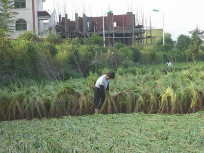 今年第13号台风“韦帕”对黄泽镇影响较大,据全镇初步统计晚稻不同程度倒伏6000亩,严重倒伏1200多亩,受淹2000多亩。为使已倒伏的单季杂交稻,不至于因已倒伏而烂掉。近日来广大农户积极趁早趁晴竖稻自救。