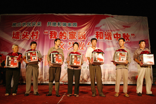 9月21日晚上,黄泽镇塘头村举行了“欢乐中秋”农民文化艺术之夜晚会,当天,该村还举行了家庭手工才艺大比拼和农民健康教育知识培训。晚会上,还为评上“三户五星”(“三户”为文明美德户、勤劳致富户及诚信守法户,“五星”为学习之星、卫生之星、公德之星、创业之星、快乐之星)的村民颁了奖。