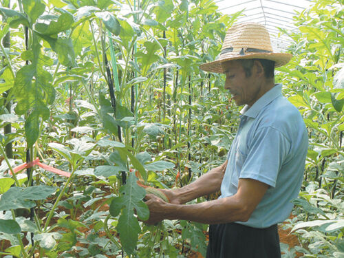 丰泥假日庄园于今年5月投资30多万元,建立了30亩大棚设施观光园,并聘请市农科所、市剡溪果业协会担任观光园的技术指导单位。目前观光园已引进种植小玉西瓜、玉米等水果蔬菜品种10多只。图为工人正在大棚内察看小玉西瓜长势,预计观光园的小玉西瓜可于10月上旬上市。