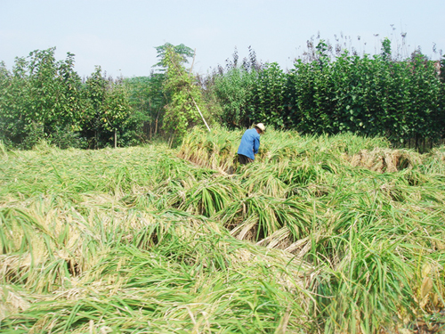 【图文】金庭镇观下村:捆扎倒伏水稻防霉烂