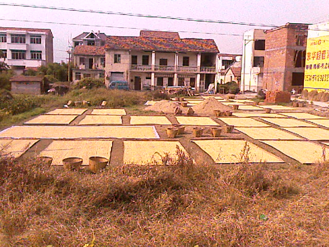 金秋,收获的季节。趁着这几天天气晴好,长乐的农户们忙着割稻晒谷,屋旁、路边的空地上金黄一片。