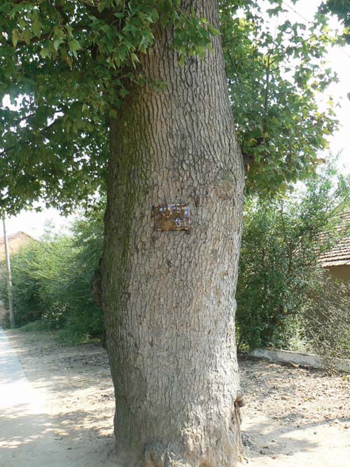 我市现有古树名木13445株。从上个世纪八十年代初以来,我市加强了对古树名木的保护,给予上牌保护,但由于风吹雨打,部分“护身符”早已生锈,难以识别,希有关部门管一管此事。图为贵门乡中心学校门口的一株古树名木上的生锈的保护牌。