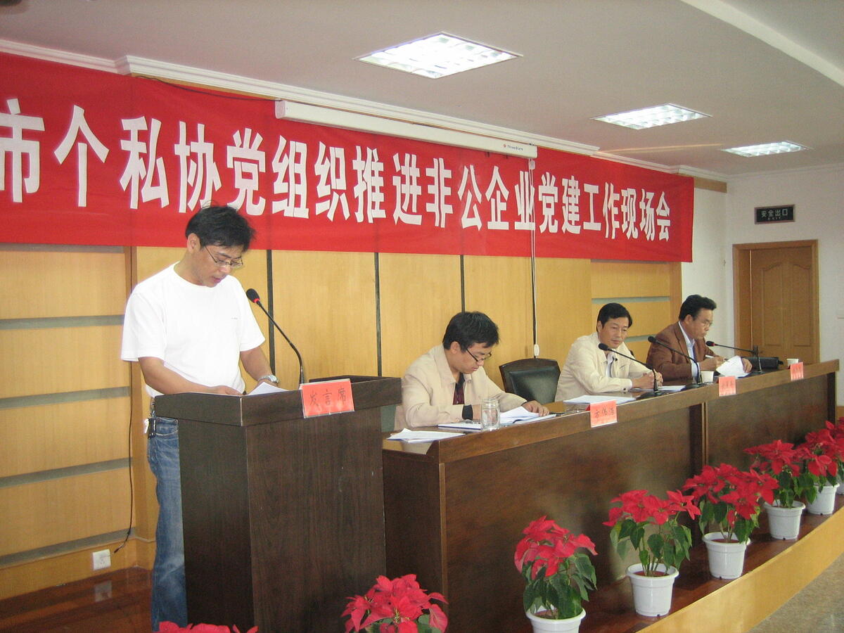 听取了长乐镇党委和长乐个私协会党支部所作的经验介绍之后,市委组织部副部长钱夏平在会上指出,在肯定长乐镇党委、个私协会“立足基础,构建机制”、“坚持个私党员五带头”等做法的基础上,要求各位结合贯彻十七大精神和科学发展观,提出五方面要求,进一步促进非公企业党建工作。