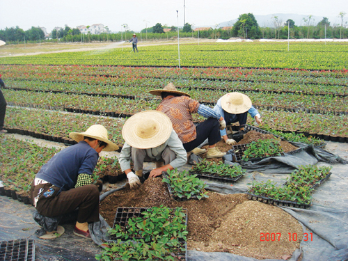 经过两个多月的建设,市生态林苗木合作社在鹿山街道古岩村的容器育苗基地开始投入生产。10月下旬以来,由于天气晴好,每天都有从附近雇来的农民在劳作。从合作社设在甘霖的苗圃中运来小苗,种植到配好比例的土壤中,一年到半年之后再连容器一起出售。董事长钱亚南介绍说,这个投资300万元的基地,正常运转的话每年可以供应容器苗300万盆。 作为苗木生产新模式的一种尝试,这样的容器育苗基地在我市还是第一家。与传统的苗木生产方式相比,它更接近工厂化生产。基地内大棚、喷灌设备一应俱全,为了防止杂草生长,放置容器苗的地面还作了隔离处理。在生产过程中,培育的容器苗可以分批销售,从三个月到半年或者一年不等,周期短,投资回收也比较快。 目前基地内开始培育的是红叶石楠和金森女贞两个品种。据钱亚南介绍,目前这两个品种在市场上很受欢迎,经济效益也相当不错。尤其是红叶石楠,被广泛用于城市绿化,他们从五年前开始引进,销售形势一直很乐观。直径3厘米的红叶石楠每株可以卖到150元以上。除了红叶石楠和金森女贞,基地还将培育小丑火棘和金边大花六道木两个新品种。 近年来花木销售形势普遍低迷,钱亚南为何还要在花木生产项目上进行大投入?对此,钱亚南表示,传统的花木品种确实效益不佳,但一些高档品种仍然销售形势很好。至于如何选择花木品种,钱亚南说,关键还是要有超前意识。像红叶石楠,五年前嵊州人基本上不了解,但经过考察,他认为这种进口的高档绿化品种,肯定会受到城市绿化的青睐,于是大规模引种,几年之后,红叶石楠果然大行其道。另外,他们苗圃中还有一个品种——黄山栾树,五年前还少有人问津,但五年之后的今天,这种乔木身价不菲。“等到市场成熟了,你再去引种发展就太迟了。”钱亚南说,在引进品种的时候,既要考虑市场消费趋势,又要与科研机构紧密联系,选择那些树形优美和适应性强的优质树种。虽然一个品种是否会受到市场青睐,也有不少运气的成分,但是经过多方考察,成功的概率会大大提高。“小丑火棘和金边大花六道木这两个品种的市场还没有完全形成,但我们比较看好。作为苗木生产企业,我们也需要做好品种梯度准备,因为市场选择在不断变化,死守着一两个品种肯定是不行的。” (图为工人们正在移栽红叶石楠)