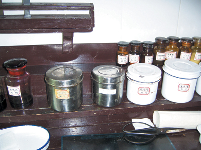 约摸十分钟后,张淞生站起来,走到一排小桌子前。我注意到,那里一字排开着几个大瓶子,里面或是药液,或是膏体。难道这都是他的自制秘方?来之前就听说过,他治病用的都是自制外用药,且这些药的配方至今未对外公开。
