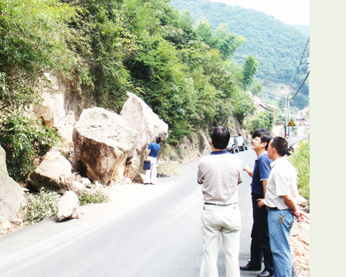 今年以来,针对辖区内山区居多的特点,谷来国土所重点加强了对地质灾害点的巡防、监控和预警工作,在上级部门的配合下,到目前已成功地处置了辖区内3起地质灾害及10多起山体滑坡等事故,较好地维护了当地人民群众的生命和财产安全。图为工作人员正在查勘发生在竹溪乡盛家坞村的一处地质灾害点。