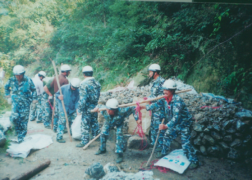 自从 9月下旬全市废弃洞封洞闭坑专项整治行动以来,国土、工商、安监、公安及甘霖、里南等部门、乡镇先后组织3次联合执法,没收了40多吨非法盗挖的萤石矿。图为执法人员正在清理萤石矿。