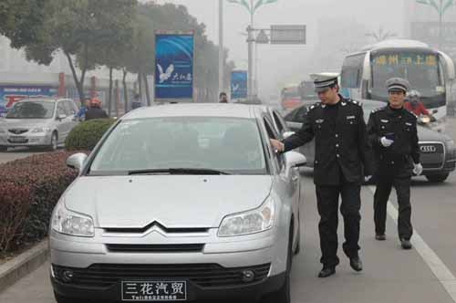 交警拦下无牌车进行检查