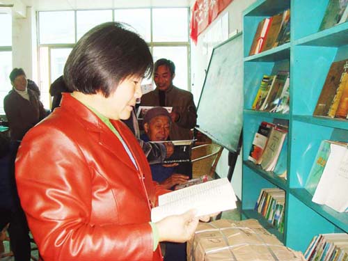下王镇小溪村图书流通站吸引了许多农民前去借阅。