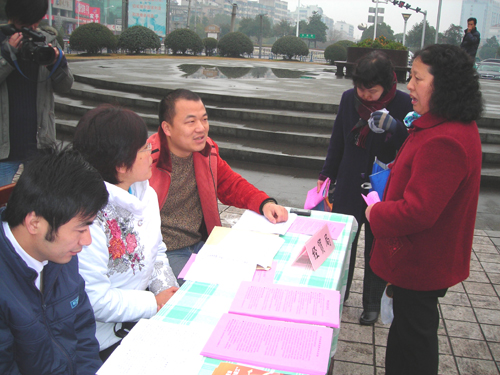 《中华人民共和国劳动合同法》于2007年6月29日通过,将于2008年1月1日起施行。该法有利于保护劳动者的合法权益,建立稳定和谐的劳动关系,促进社会公平正义,最终实现社会和谐。为加强对《劳动合同法》的宣传,昨日上午,市劳动保障局、总工会、经贸局、司法局联合在中心广场举行了一场《劳动合同法》大型宣传咨询活动。图为活动现场。