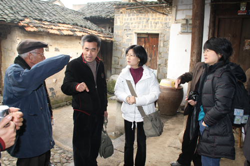 2007年12月28-29日,省第三次全国文物普查业务指导组专家冯宝英来我市指导文物普查野外调查试点工作,并对市普查组工作人员开展野外调查业务指导培训。图为普查组人员在崇仁镇迎联村作普查指导。