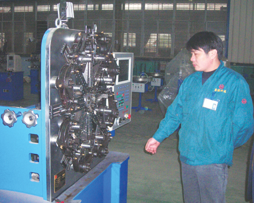 作为一家专业生产电脑弹簧机械及配套产品设备的厂家,浙江万能弹簧机械有限公司多年来坚持“科技创造未来”的理念,目前已从生产单一普通弹簧机械的厂家发展成为拥有6大系列30多个品种的现代企业。公司连续五年获中国零部件协会优秀新产品奖,成为省级弹簧机械重点龙头企业。图为技术人员正在调试新产品。